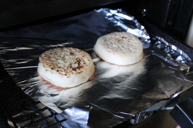 Toast the crumpets in either a toaster or under the grill until they are lightly browned. I used the grill because my toaster seems to have a mind of its own. Pop the yoghurt into a bowl and mix until it turns glossy.